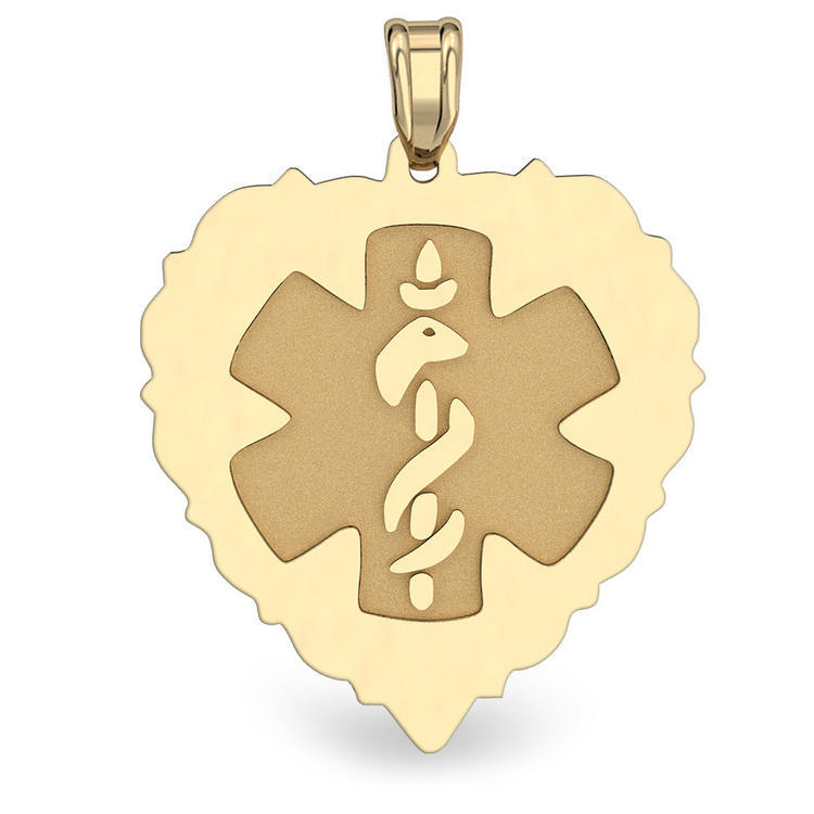 14K Yellow Gold Medical ID Heart Charm or Pendant