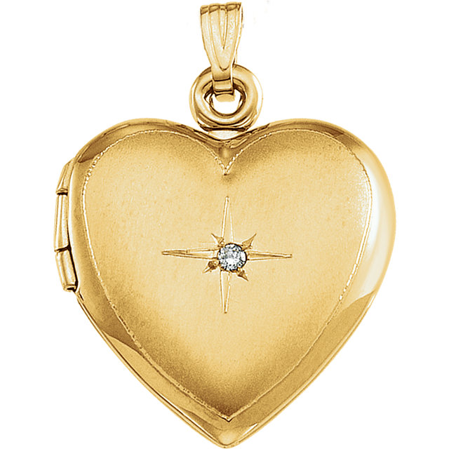Solid 14K Yellow Gold Heart Photo Locket with Diamond