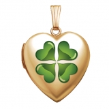 14K Yellow Gold "Sweetheart" 4 Leaf Clover w/ Green Enamel Locket