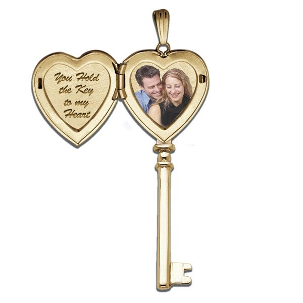 Solid 14K Yellow Gold Key Heart Photo Locket