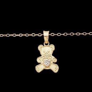 14K Yellow Gold TEDDY BEAR W/CZ and 15"Chan