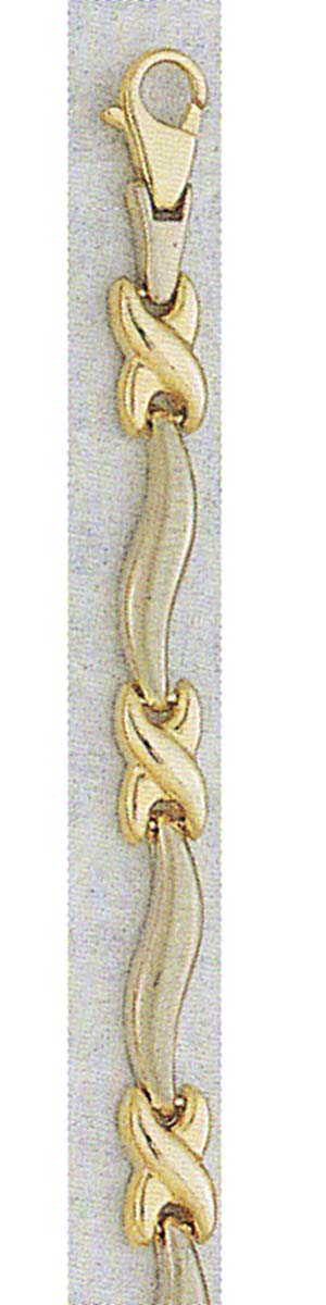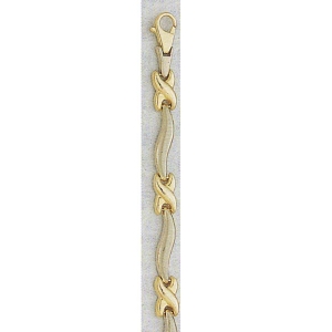 This 14K Solid Gold two tone bracelet has both a high polish finish and a satin finish. The sturdy box lock and figure eight clasp make this bracelet durable enough for everyday use.