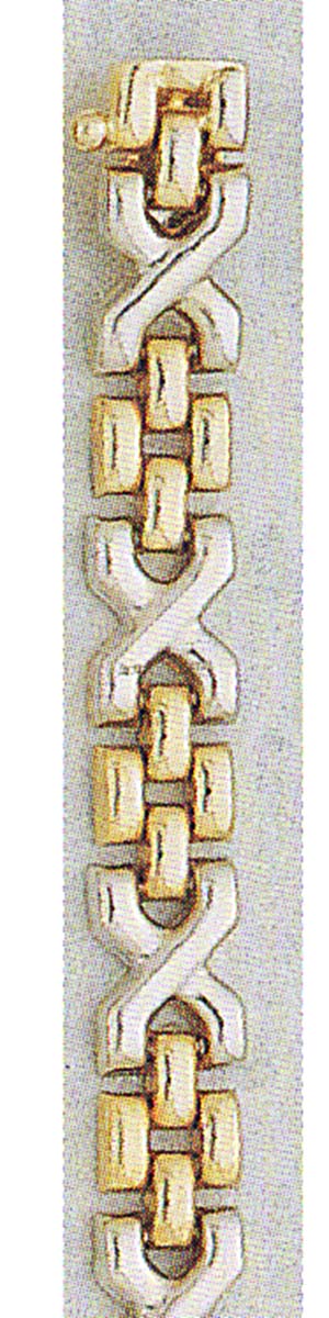 This beautiful bracelet has both style and durability. The two tone links are high polished and the box lock and figur eight link add extra strength.