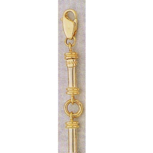 THis is a 14K Solid Gold bracelet with a stylish two tone design and a durable lobster claw clasp.