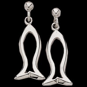 14K White Teen Ichtus Dangle Earrings