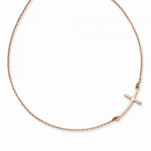 14k Large Rose Gold Sideways Curved Cross Necklace