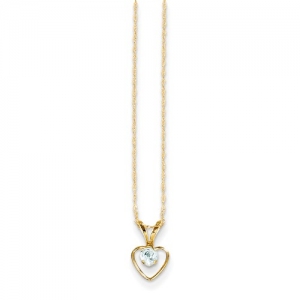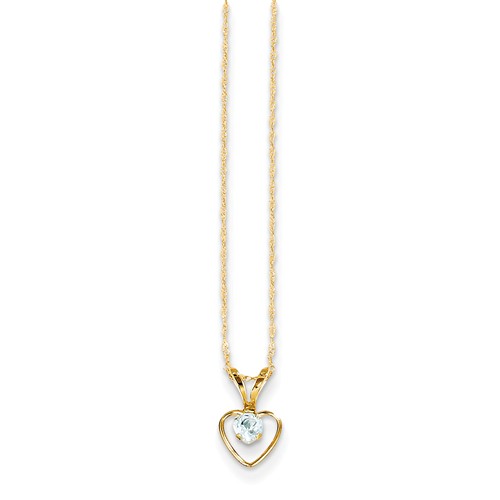 14k Yellow Gold 3mm Aquamarine Heart Birthstone with Chain