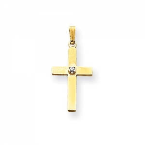 14k Polished .01ct. Diamond Cross Pendant
