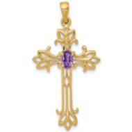 14k Polished Amethyst Cross Pendant