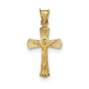 14k Polished Satin and D/C Crucifix Pendant