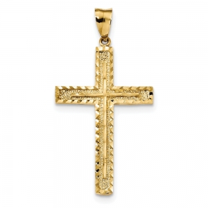 14k Polished and Textured Diamond-cut Latin Cross Pendant