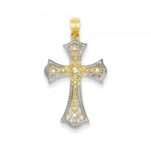 14k Rhodium Diamond-cut Cross Pendant