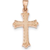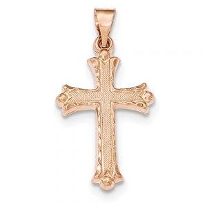 14K Rose Gold Brushed and Polished Budded Cross Pendant