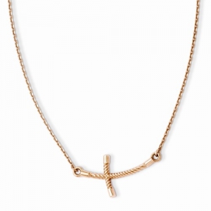 14K Rose Gold Large Sideways Curved Twist Cross Necklace