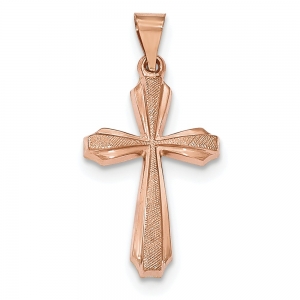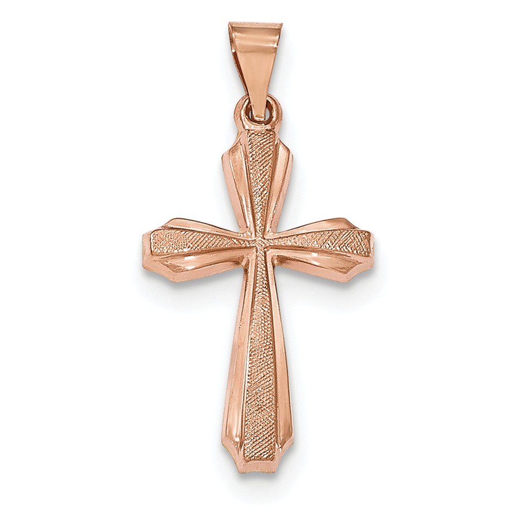 14K Rose Gold Textured, Brushed and Polished Passion Cross Pendant