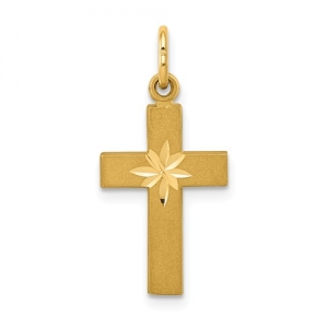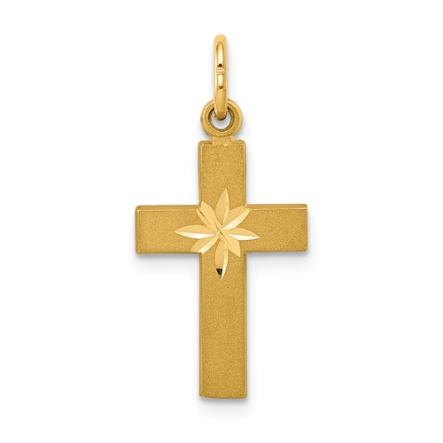 14k Small Diamond-cut Cross Pendant