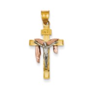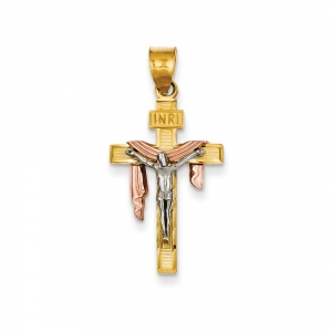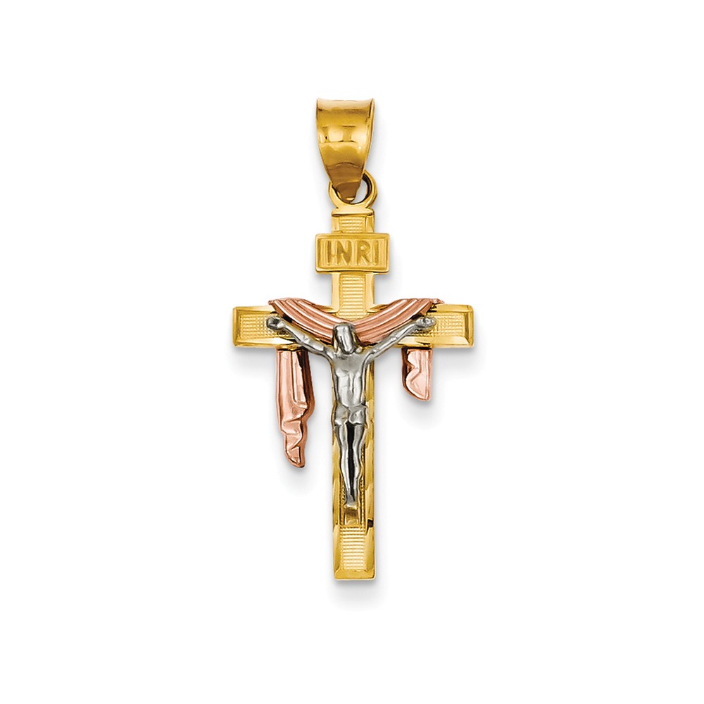 14K Tri-color Diamond-cut Large Draped INRI Crucifix Pendant