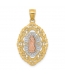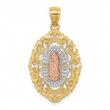 14K Tri-Color Gold Our Lady Of Guadalupe Scalloped Oval Diamond-Cut Religious Medal