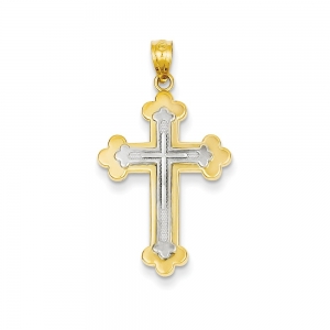 14k Two-tone Budded Cross Pendant