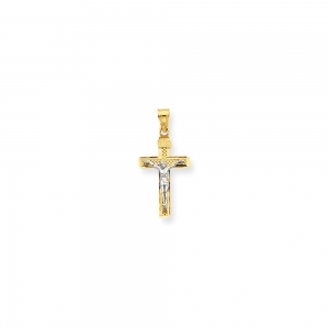 14K Two-tone D/C Small Block Lattice Cross w/Crucifix Pendant