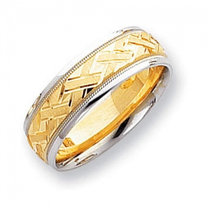 14k Two-Tone 7mm Design-Etched Wedding Band