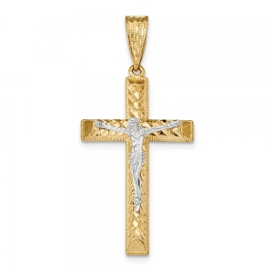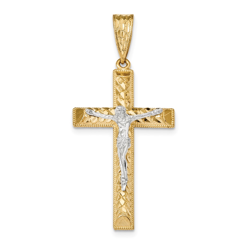 14k Two-tone Diamond-cut Crucifix Pendant