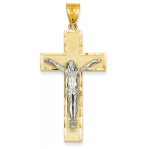 14K Two-tone Diamond-cut Crucifix Pendant