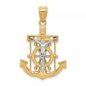14k Two-tone Diamond-cut Mariner\'s Cross Pendant