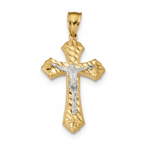 14k Two-tone Diamond-cut Passion Crucifix Pendant
