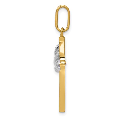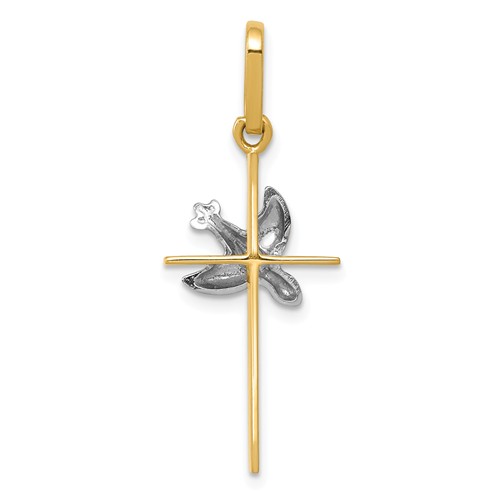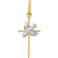 14k Two-tone Dove Cross Pendant