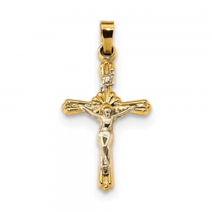 14k Two-tone Flower Center INRI Crucifix Pendant
