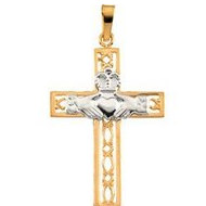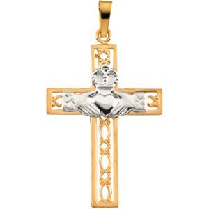 14K TWO TONE GOLD CLADDAGH CROSS PENDANT