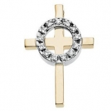 14K Two Tone Yellow Gold & Diamond Cross Pendant