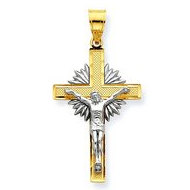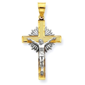 14K Two-Tone Gold Diamond-cut Crucifix w/Sunrays Pendant