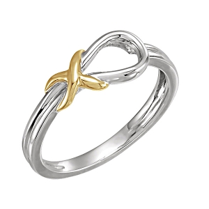 14K Two Tone Gold Love Knot Ring w/ Engravable Band