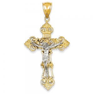 14k Two-tone INRI Fleur De Lis Crucifix Pendant