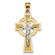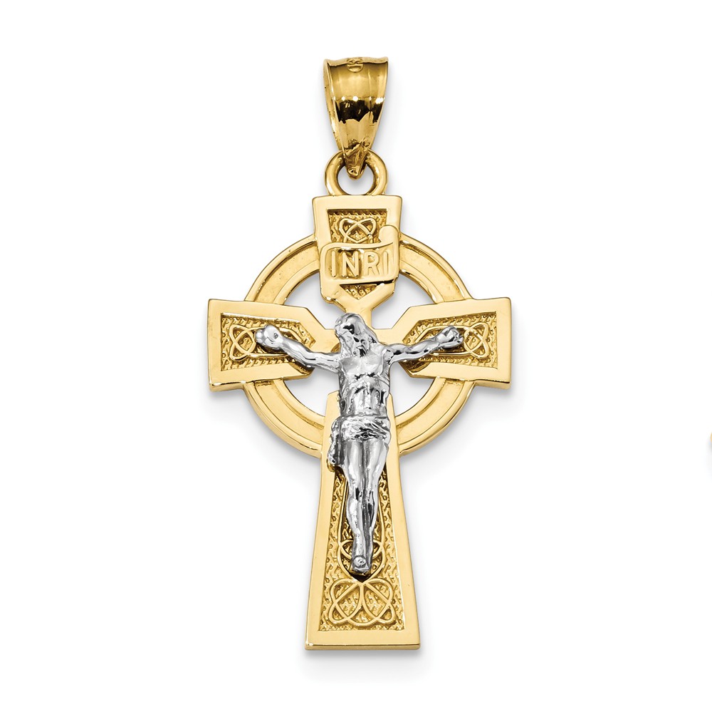 14k Two-tone Polished Celtic INRI Crucifix Pendant