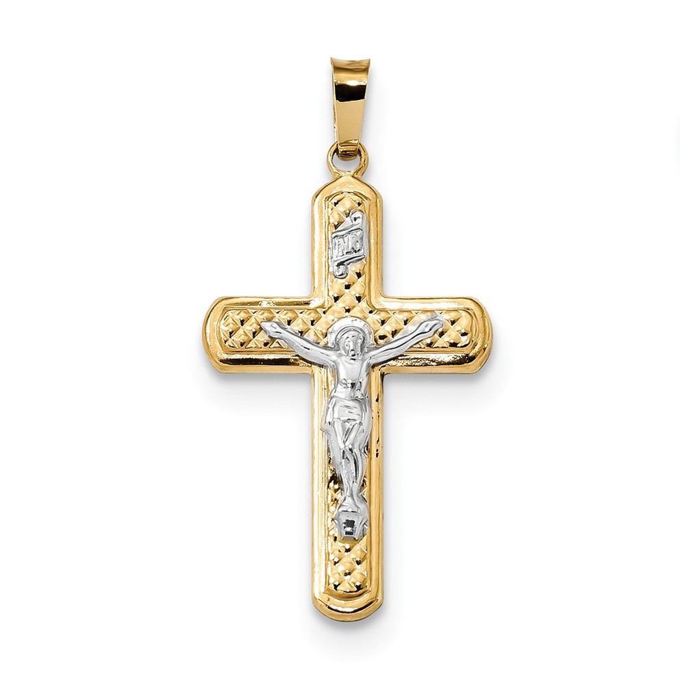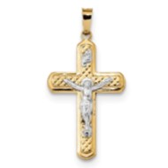 14k Two-tone Polished and Textured INRI Crucifix Pendant
