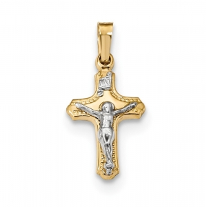 14k Two-tone Polished and Textured INRI Crucifix Pendant