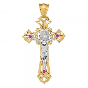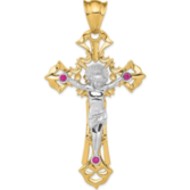 14k Two-tone Polished with Red CZs Crucifix Pendant