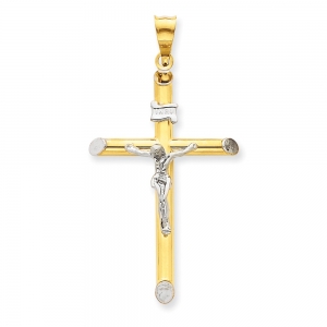 14k Two-tone & Rhodium INRI Crucifix Pendant