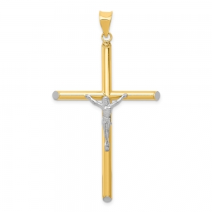 14k Two-tone & Rhodium INRI Crucifix Pendant