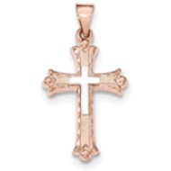 14K Two-tone Textured, Brushed & Polished Budded Cross Pendant