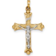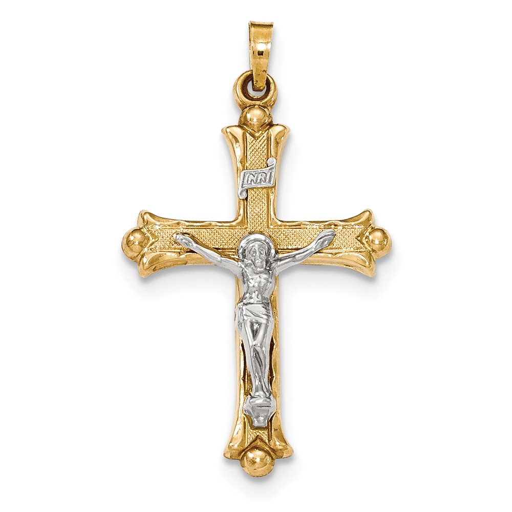 14k Two-Tone Textured and Polished INRI Crucifix Pendant