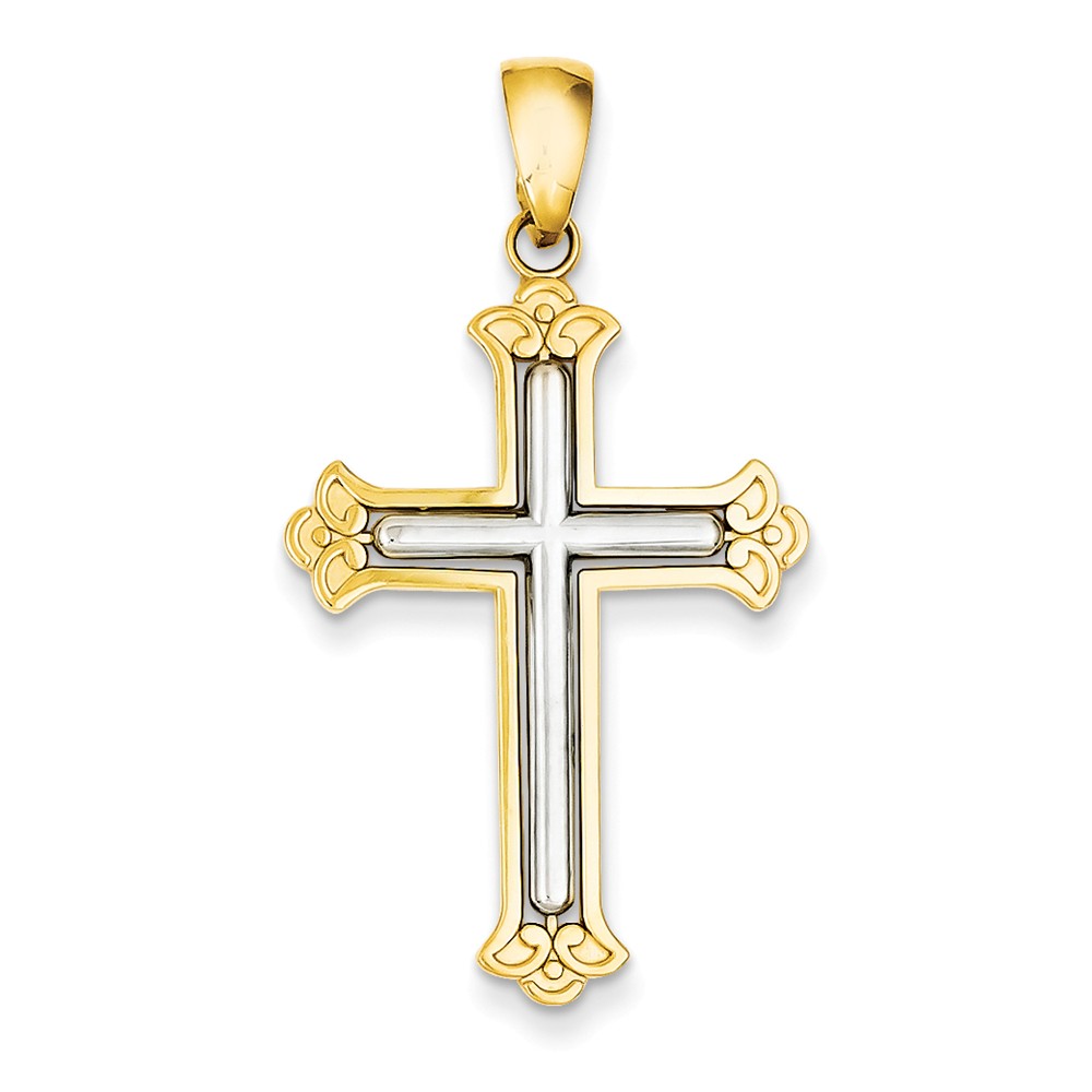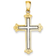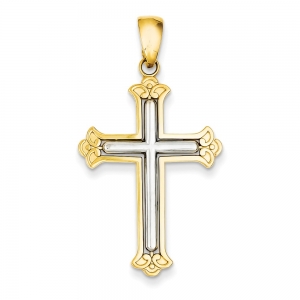 14K Two-tone White Cross in Budded Yellow Cross Frame Pendant