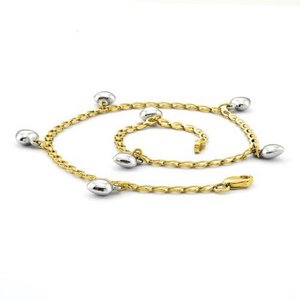 14k Two-Tone Polished White Puffed Hearts Anklet