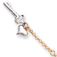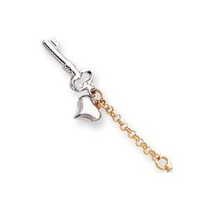 14k Two-Tone Adjustable Polished Puffed Heart & Key Anklet