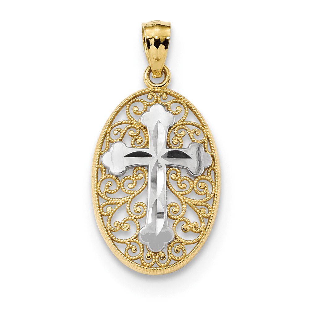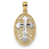 14k w/Rhodium Diamond-cut Cross in Filigree Charm