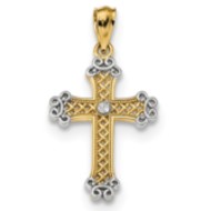 14k w/Rhodium Diamond-cut Filigree Cross Pendant