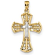 14k w/Rhodium Polished D/C Filigree Cross Pendant